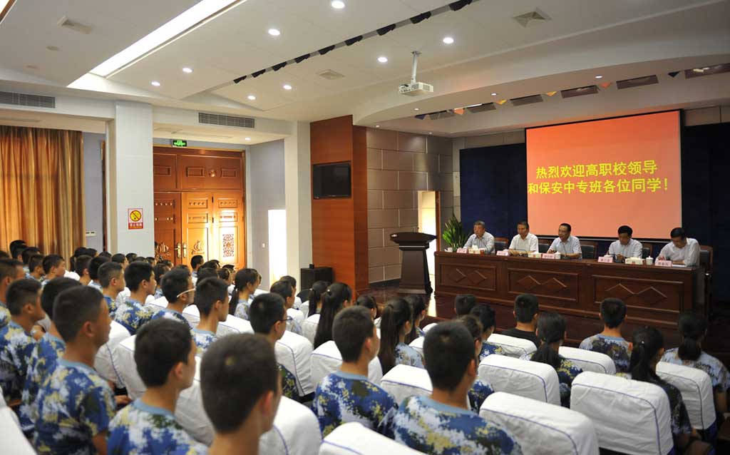 為加強(qiáng)專業(yè)保安人才隊(duì)伍的培養(yǎng),經(jīng)教育部門批準(zhǔn), 2015年總公司與淮安市高職校聯(lián)合開辦了三年制保安中專班,2015屆開設(shè)1個(gè)班有40余名同學(xué),2016年錄取符合條件的新生80余名,已開設(shè)兩個(gè)班。目前保安中專班已有3個(gè)班級(jí)120余名學(xué)生。中專班教學(xué)由學(xué)校方面負(fù)責(zé)文化課程的授課,保安公司負(fù)責(zé)保安業(yè)務(wù)課程和專業(yè)技能的教學(xué)。