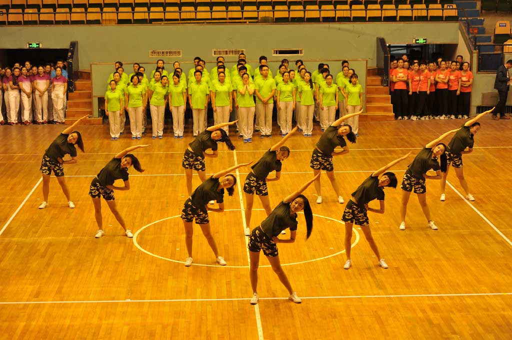 在此次活動中,所有人員充分發(fā)揮了不怕苦、不怕累的精神,積極參與排練,刻苦訓(xùn)練,最終獲得了殊榮。由于時間緊,任務(wù)重,接到通知時已臨近比賽,從各部門人員抽調(diào)到排練只用了一個星期。所有人員都是初次接觸第九套廣播操,所有動作都是第一次學習。人多動作復(fù)雜難以整齊劃一。為了達到整齊劃一的標準動作,帶隊崔主任帶領(lǐng)大家一遍又一遍的練習。從早晨8點一直到晚8點,期間,所有人員克服了種種困難,訓(xùn)練場流下了淚水與汗水。