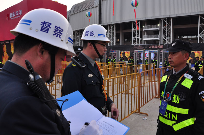為做好安保工作,11月2日上午,人防中心專門組織參加臨沂安保人員進(jìn)行專項(xiàng)培訓(xùn)。3日上午7:00集合出發(fā),提前到達(dá)臨沂大學(xué),按照承辦方要求,現(xiàn)場搭建300米防爆墻,10個預(yù)檢票口通道,承擔(dān)了25000名觀眾入場的安檢、檢票通道的秩序維護(hù)等安保任務(wù)。