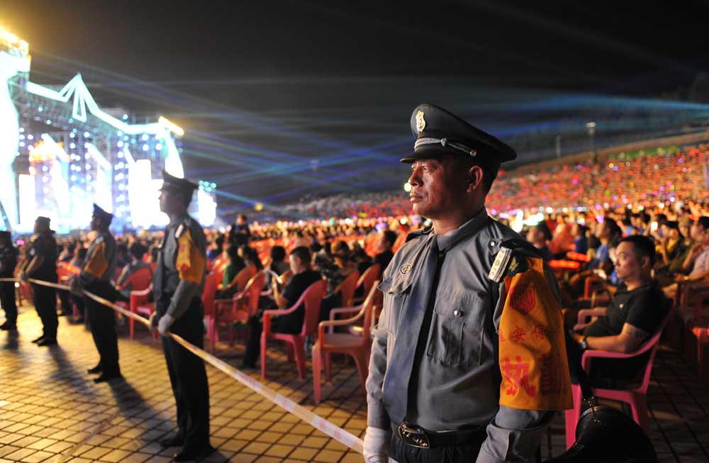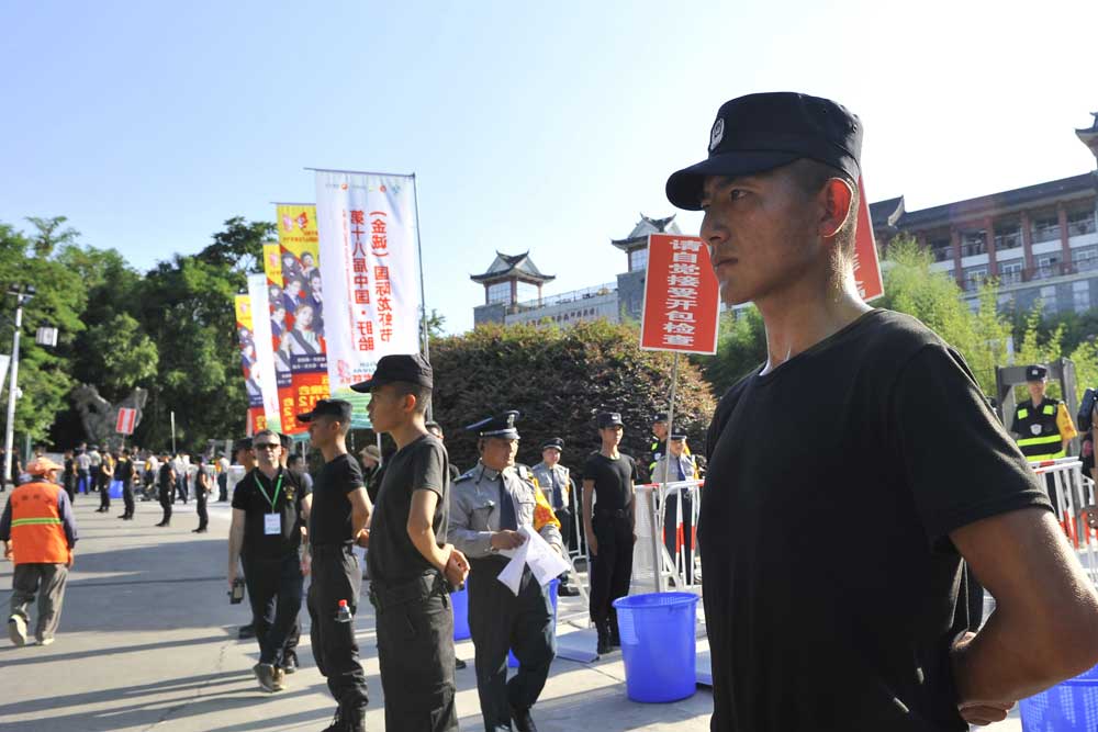 由于晚會演出現(xiàn)場地處山腰,給安檢和安保工作帶來一定的難度。為確實(shí)做好安保任務(wù),總公司多次召開專項(xiàng)工作會議,統(tǒng)一部署安保工作,人防中心總監(jiān)王錦春先后帶領(lǐng)領(lǐng)導(dǎo)班子多次到盱眙都梁廣場踏勘現(xiàn)場,熟悉崗位,開展現(xiàn)場拉練,研定安保方案??偣狙杆俪闪⑼頃弊C檢查、安全檢查、搜毒搜爆、秩序維護(hù)、安保巡邏、駐地保衛(wèi)、無人機(jī)監(jiān)控、突發(fā)事件處置組等安保小組,同時(shí)抽調(diào)行政中心、人防中心、押運(yùn)中心、科技公司、器材公司、犬防大隊(duì)、無人機(jī)飛控隊(duì)、保安中專班、銀盾檢測站等部門人員參與安?;顒?。