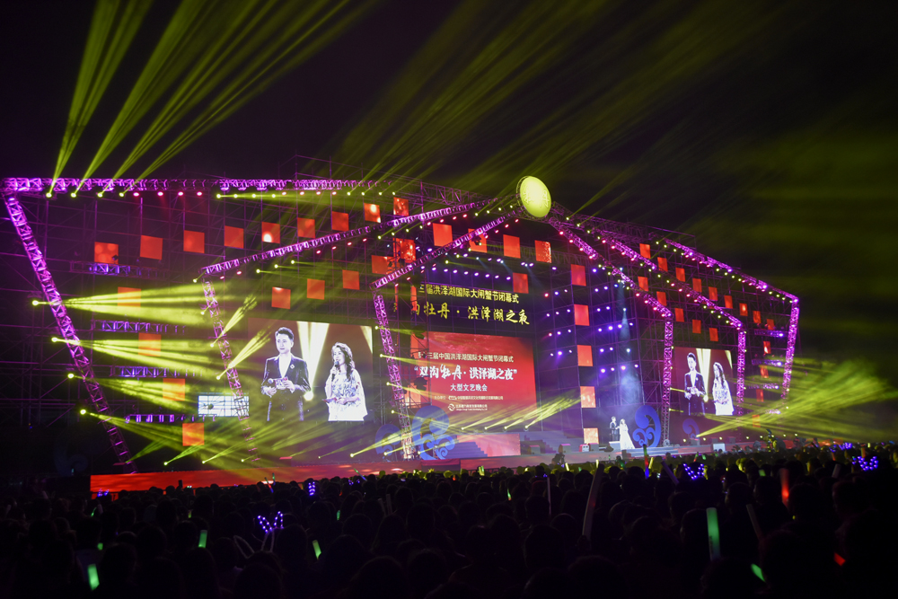 2018年10月28日晚,第十三屆中國(guó)洪澤湖國(guó)際大閘蟹節(jié)閉幕式文藝晚會(huì)在洪澤區(qū)外國(guó)語中學(xué)體育場(chǎng)舉行,晚會(huì)邀請(qǐng)了羅志祥、張韶涵、阿杜、溫嵐等名星登臺(tái)演出,有12000余名觀眾進(jìn)場(chǎng)觀看,總公司承擔(dān)了文藝晚會(huì)的整體安保工作。