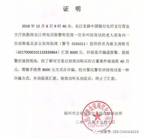 該老年客戶仍心存僥幸,遲疑不決。于是華鼎保安員江明將該老年客戶帶至該行工作人員丁雯雯處一起與其交談,并進行進一步防詐騙知識宣講,同事向110報警。110很快來該行了解情況后,告知是電信詐騙,不要匯款。最終該老年客戶沒有匯款。這是華鼎保安員江明今年第二次堵截電信詐騙,他對工作認真負責(zé)的態(tài)度受到了該行與廣大客戶的一致稱贊。